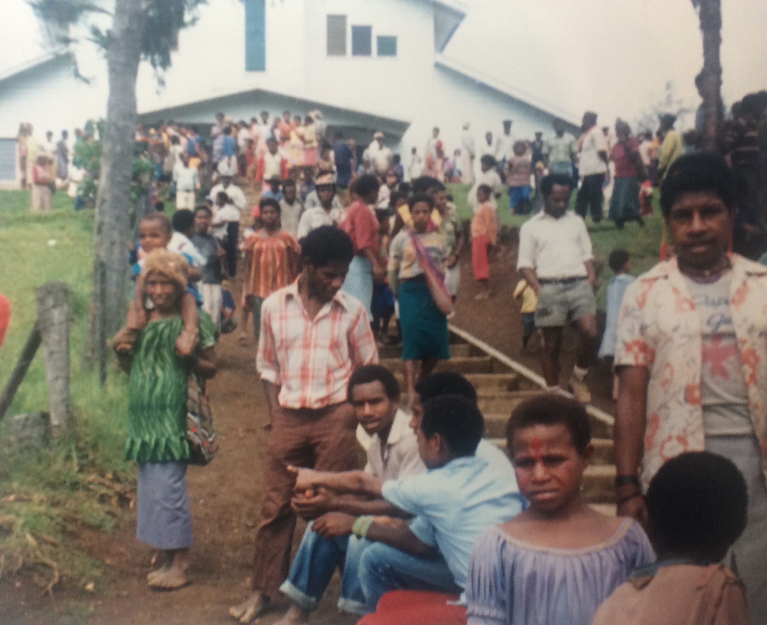 28. A typical scene after Mass on Sunday outside Dirima Catholic church. January, 1987. Photographer: Vincent Barry Donohoe 186.