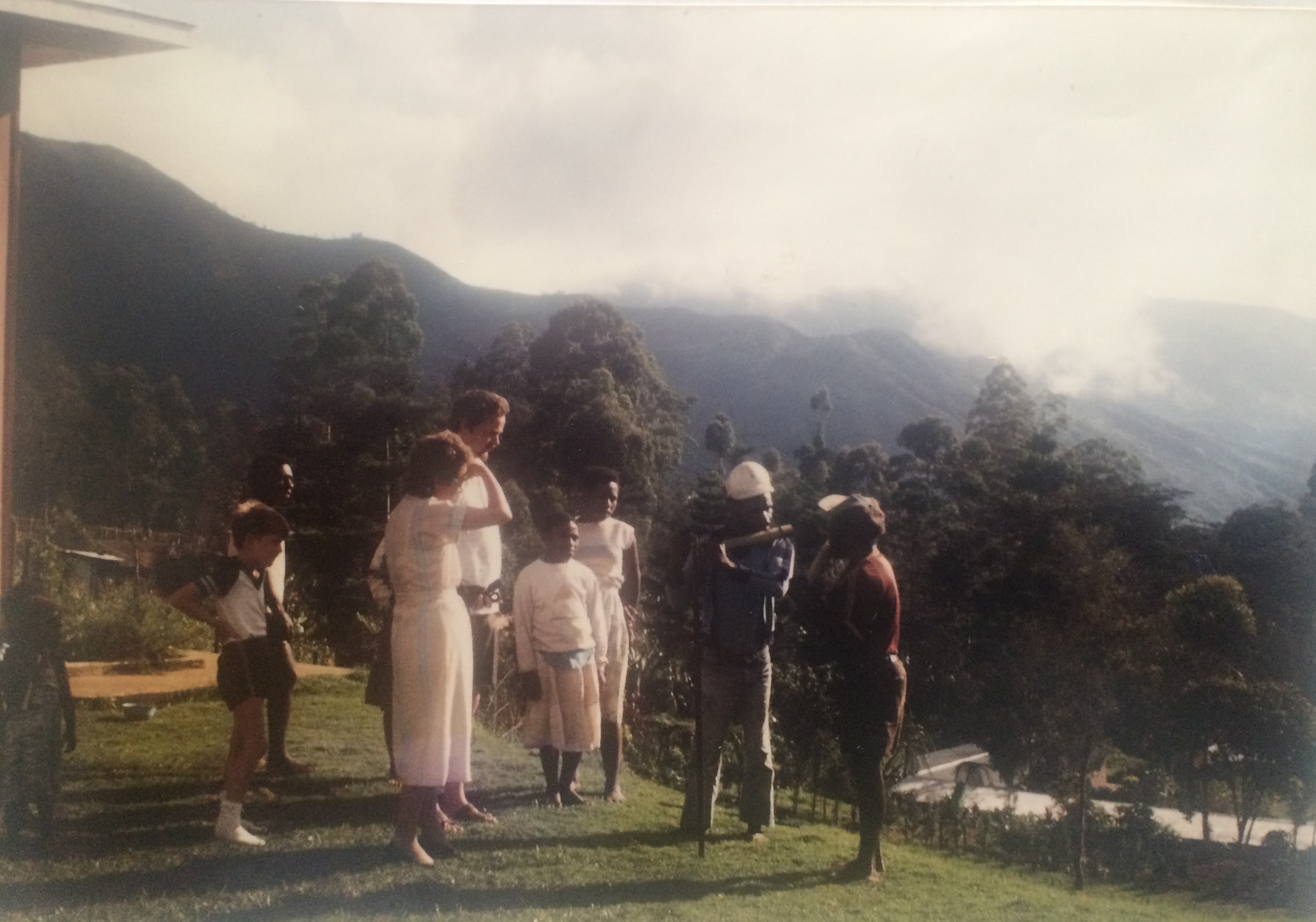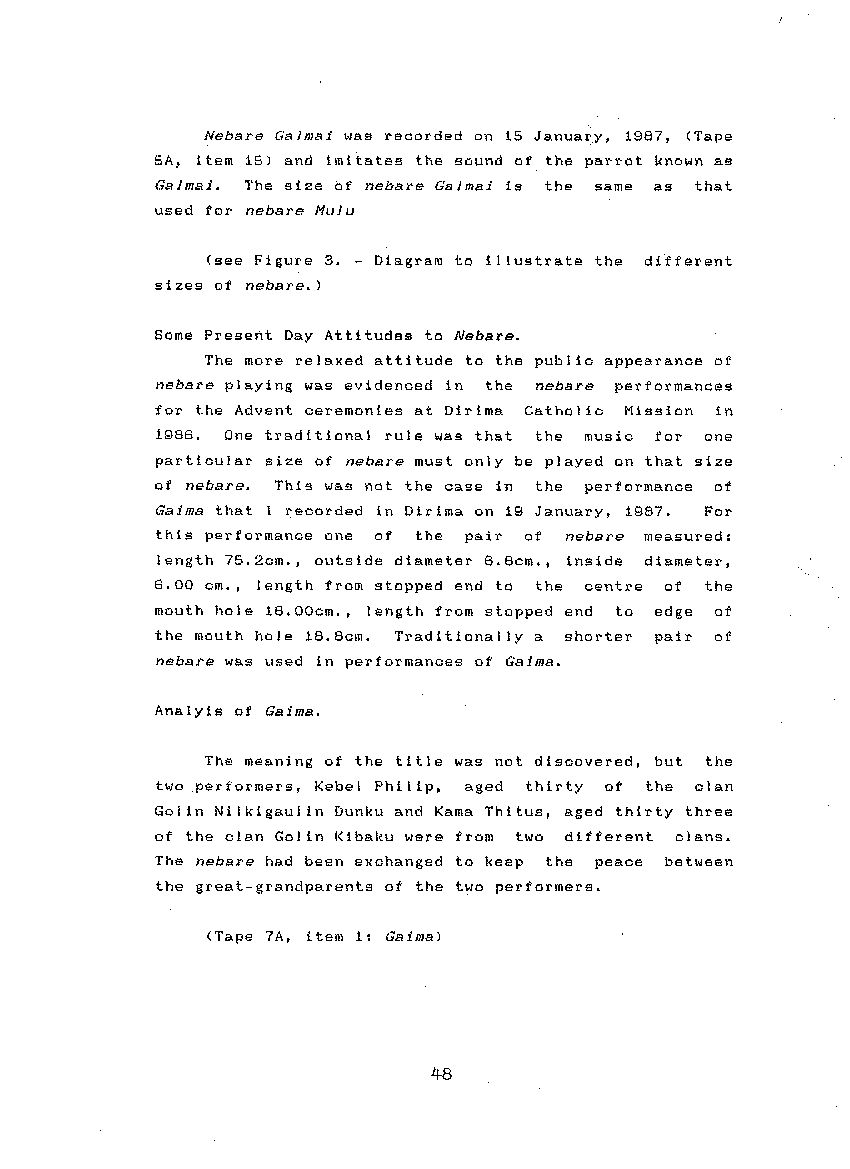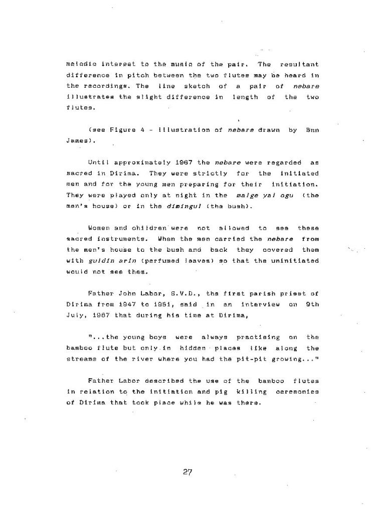 5. Kaupa Ambrose of the clan Gilin Kibaku and Gore Jacob of the clan Golin Nilkigaulin Bregaulin playing the nebare at Dirima, January, 1987 Photographer: Vincent Barry Donohoe